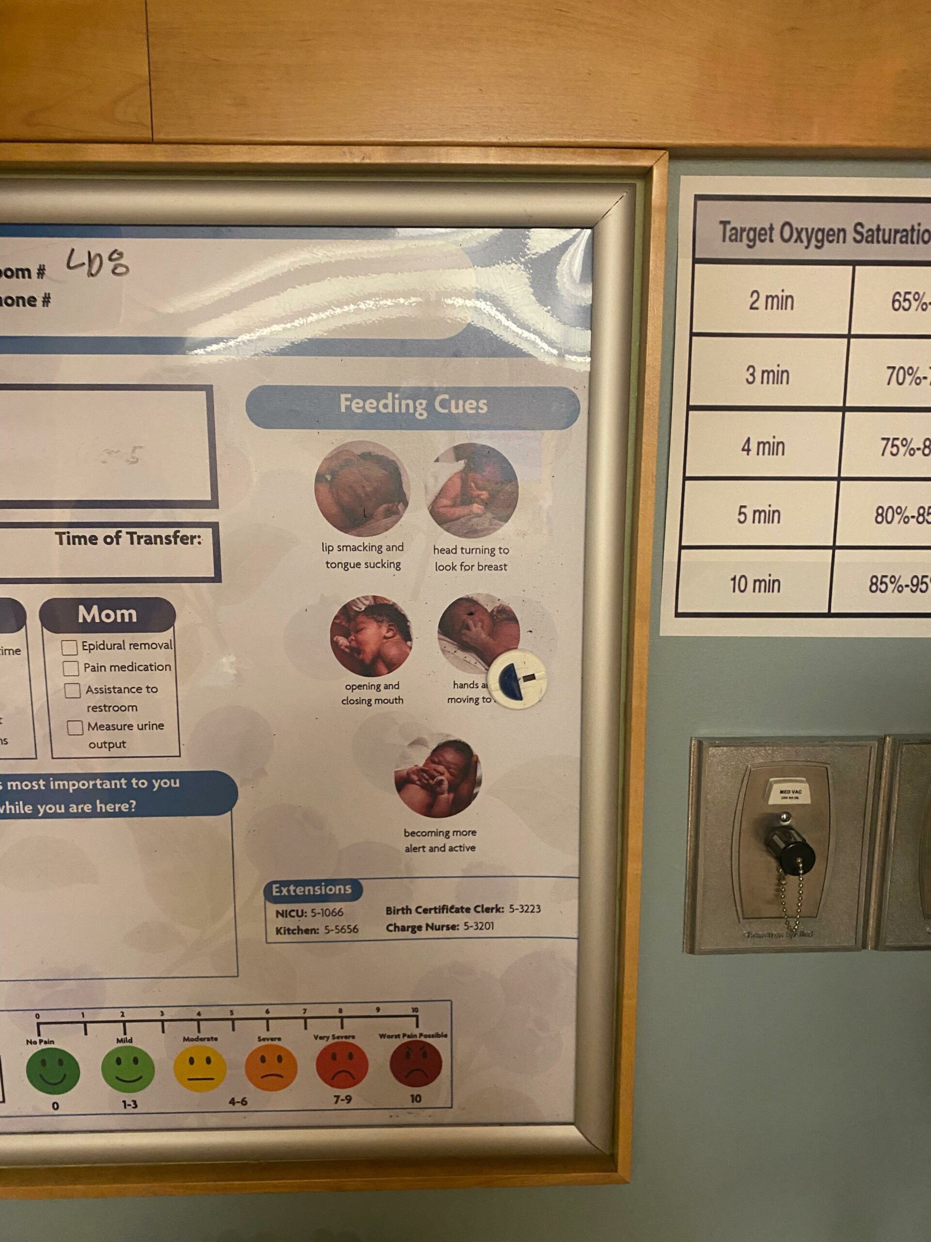 - Feeding cues on the whiteboard inside the patient’s rooms at ANMC.
