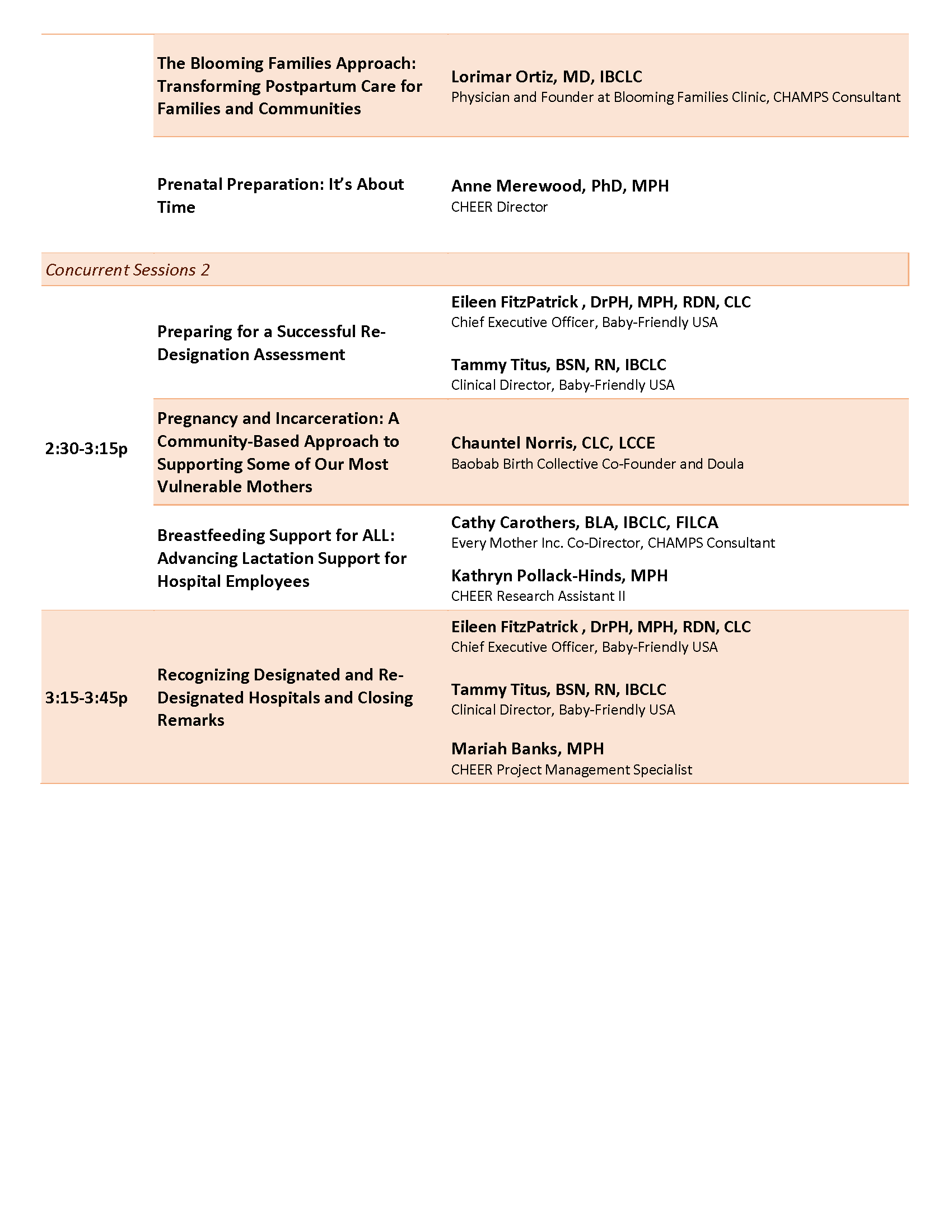 CHEER was happy to disseminate our work at the USBC National Breastfeeding Conference & Convening (NBCC) 2021! Check out our breakout presentations via the Whova Platform. Presentation recordings are available to all conference attendees for up to six months. Post-event registration and access are available until July 8.